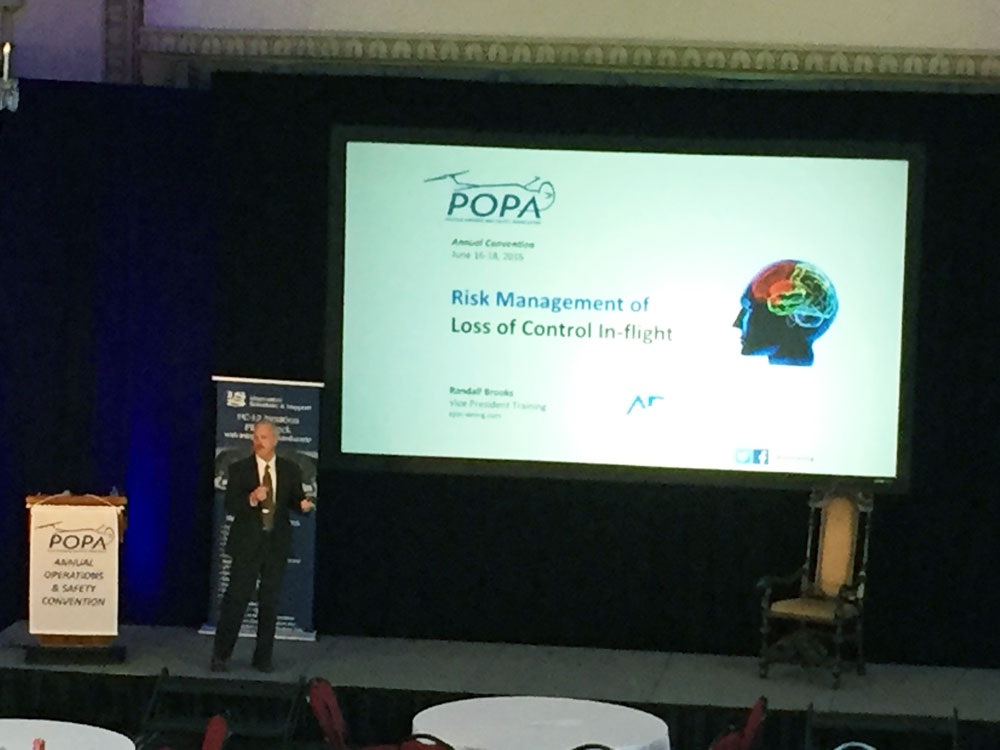 Mr. Brooks also presented information regarding gaps which exist between the training currently required by regulations and actual situations which pilots might face in an unexpected aircraft upset event, making guests aware of the difference which can exist between licensing training and the specific knowledge and skills which may be required in an airplane upset. Upset recovery concepts and skills can be counterintuitive, and therefore difficult to apply effectively in the time critical, life threatening situation that an airplane upset event creates if not learned and practiced in advance.