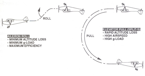 IMPORTANT NOTE: It must be emphasized that the Split-S Maneuver shown in this video (below) is an exercise in what NOT TO DO in an overbank situation. We find it to be a very effective and dramatic technique to demonstrate the risks, life-threatening dangers and challenges of the split-s pull through response to an over-bank situation in-flight. As a few of our members have already observed, in an over-bank situation the pilot needs to continue the roll around to upright flight using an unloaded aileron roll type maneuver.